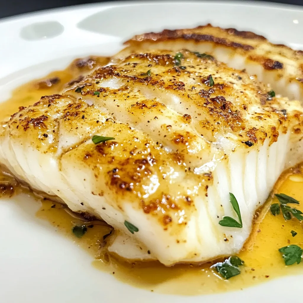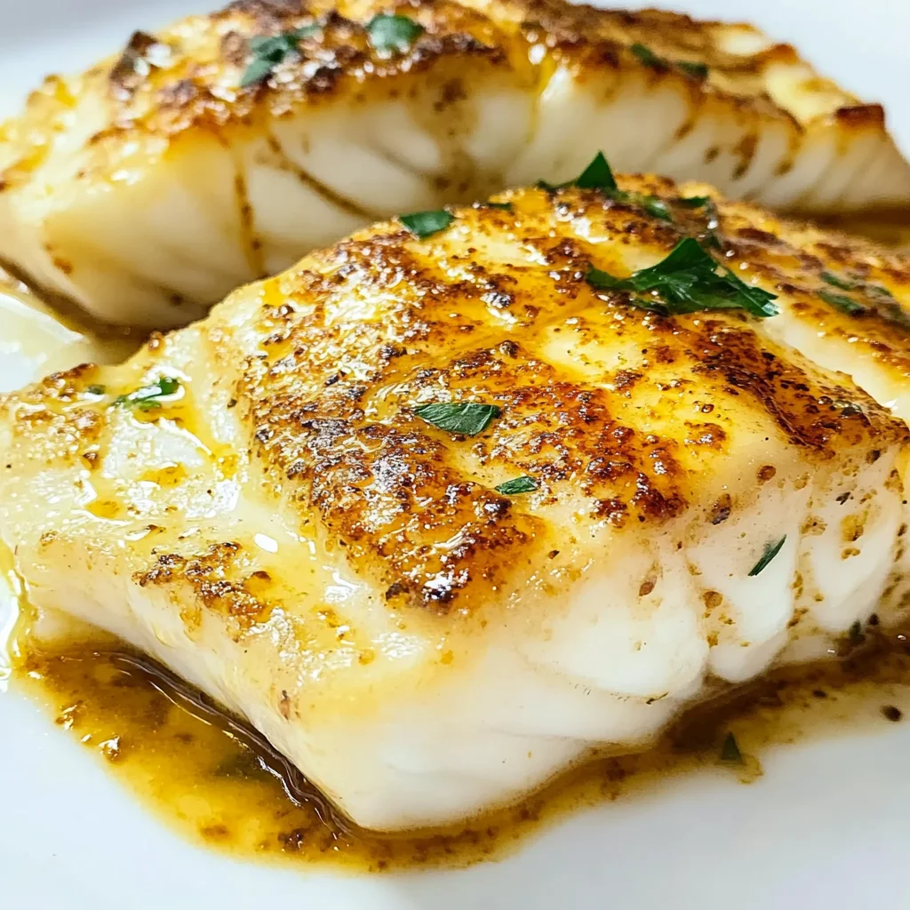 A Cozy dinner featuring tender Chilean sea bass fillets, perfectly seared and served with a rich buttery sauce.
